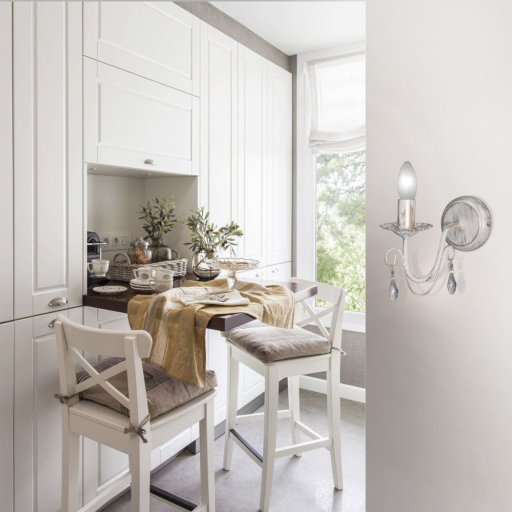 Бра S1153-1 от Петрасвет: Изысканный классический свет для вашего дома Преобразуйте интерьер вашего дома с помощью этого элегантного настенного бра S1153-1 от Петра Света. Это не просто светильник – это произведение искусства, сочетающее в себе традиционную классику, нотки неоклассики и очарование стиля прованс. Идеально подходящее для создания уютной и романтической атмосферы в гостиной, спальне, прихожей или коридоре, это бра станет настоящим украшением вашего дома. Премиальное качество и российское производство Бра S1153-1 изготовлено в России ведущим производителем осветительных приборов – Петрасвет. Мы гордимся высоким качеством нашей продукции, которая отвечает самым строгим требованиям безопасности и долговечности. В производстве используются только надежные материалы, что гарантирует долгий срок службы светильника. Элегантный дизайн и детали Корпус бра выполнен из прочного металла, окрашенного в элегантный белый цвет с патиной золота, что придает ему благородный и утонченный вид. Сочетание классической формы и декоративных элементов создает неповторимый стиль. Хрустальные подвески, расположенные в верхней части бра, не только добавляют эстетическую привлекательность, но и рассеивают свет, создавая мягкое и уютное освещение. Благодаря направленности рассеивателя вверх, свет фокусируется на потолке, что обеспечивает равномерное освещение помещения и подчеркивает текстуру стен и потолка. Технические характеристики Бренд: Петрасвет Страна производства: Россия Материал светильника: Металл Цвет светильника: Белый с патиной золота Тип цоколя: E14 – стандартный и удобный цоколь, позволяющий легко заменить лампочку. Модель: S1153 Тип ламп: Поддерживает использование трех типов ламп: Накаливания: Классический вариант, обеспечивающий теплый свет, но требует более частой замены. Светодиодная: Экономичный и долговечный вариант, позволяющий регулировать яркость света. Люминисцентная: Обеспечивает яркий и равномерный свет. Ширина основания: 12 см – оптимальная ширина для большинства настенных поверхностей. Высота: 23 см – достаточная высота для комфортного освещения. Ширина (в коробке): 27 см Высота (в коробке): 14 см Длина (в коробке): 14 см Напряжение: 220 В – стандартное напряжение для большинства розеток в бытовых условиях. Площадь освещения: 5 м? – идеально подходит для небольших помещений, таких как спальня, прихожая или кабинет. Световой поток: 750 лм – обеспечивает достаточное освещение для комфортной работы и отдыха. Тип крепления: Планка – обеспечивает надежное и простое крепление к стене. Количество ламп: 1 – удобство и экономичность. Стиль: Классический, неоклассика, прованс – универсальный стиль, который подойдет к любому интерьеру. Гарантия: 7 лет – уверенность в качестве и надежности товара. Комплектация: Светильник, паспорт. Преимущества бра S1153-1 от Петрасвет Эстетичный дизайн: Сочетание классики, неоклассики и прованса делает этот бра идеальным выбором для создания уютной и элегантной атмосферы. Высокое качество: Использование прочных материалов и современный дизайн гарантируют долговечность и надежность. Универсальность: Подходит для различных помещений и стилей интерьера. Простота установки: Благодаря типу крепления планка установка не требует специальных навыков. Долговечность: Гарантия 7 лет подтвержд