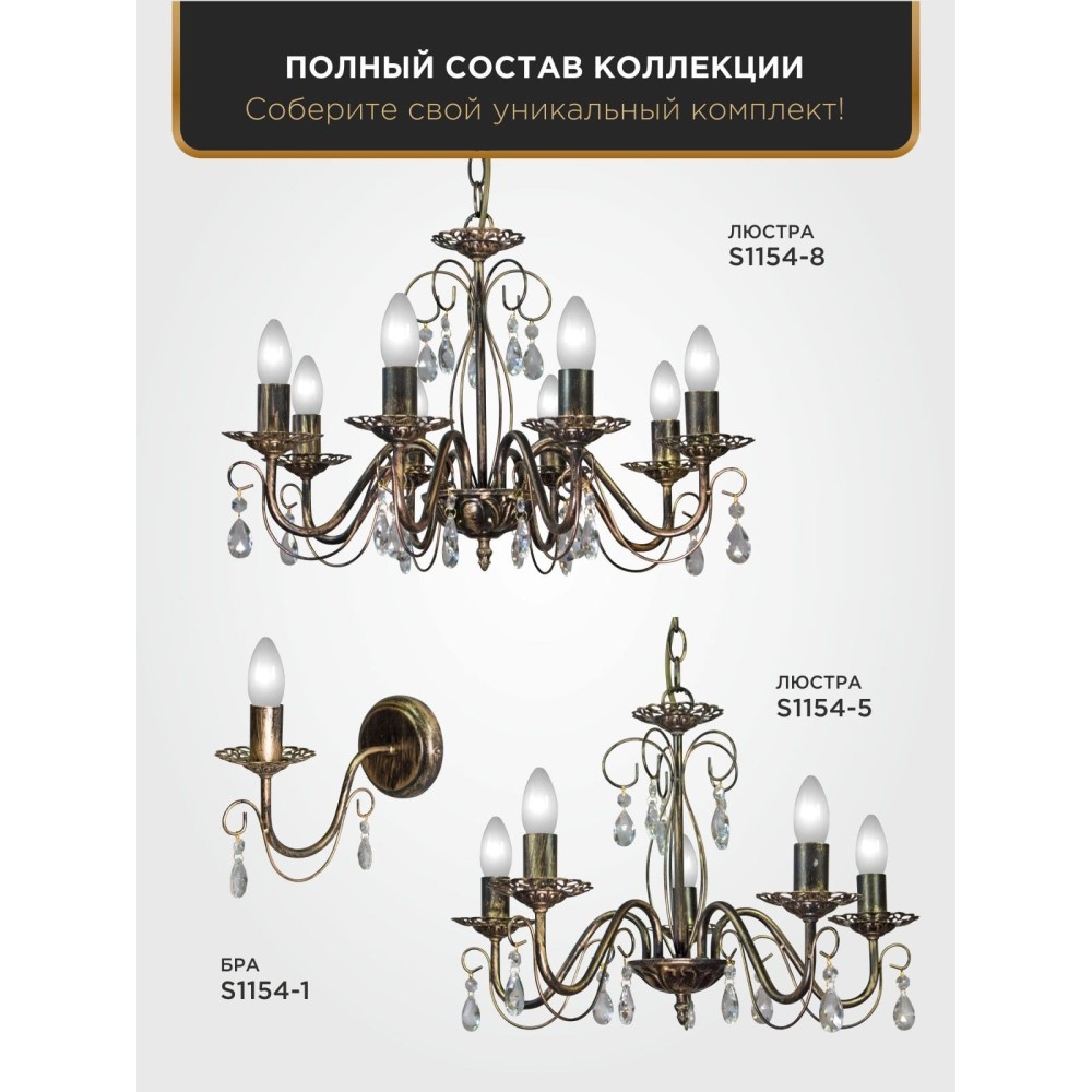 Совместимость с различными типами ламп: Можно использовать лампы накаливания, светодиодные или люминисцентные. Эта люстра станет настоящим украшением вашего дома и создаст атмосферу уюта, роскоши и элегантности.