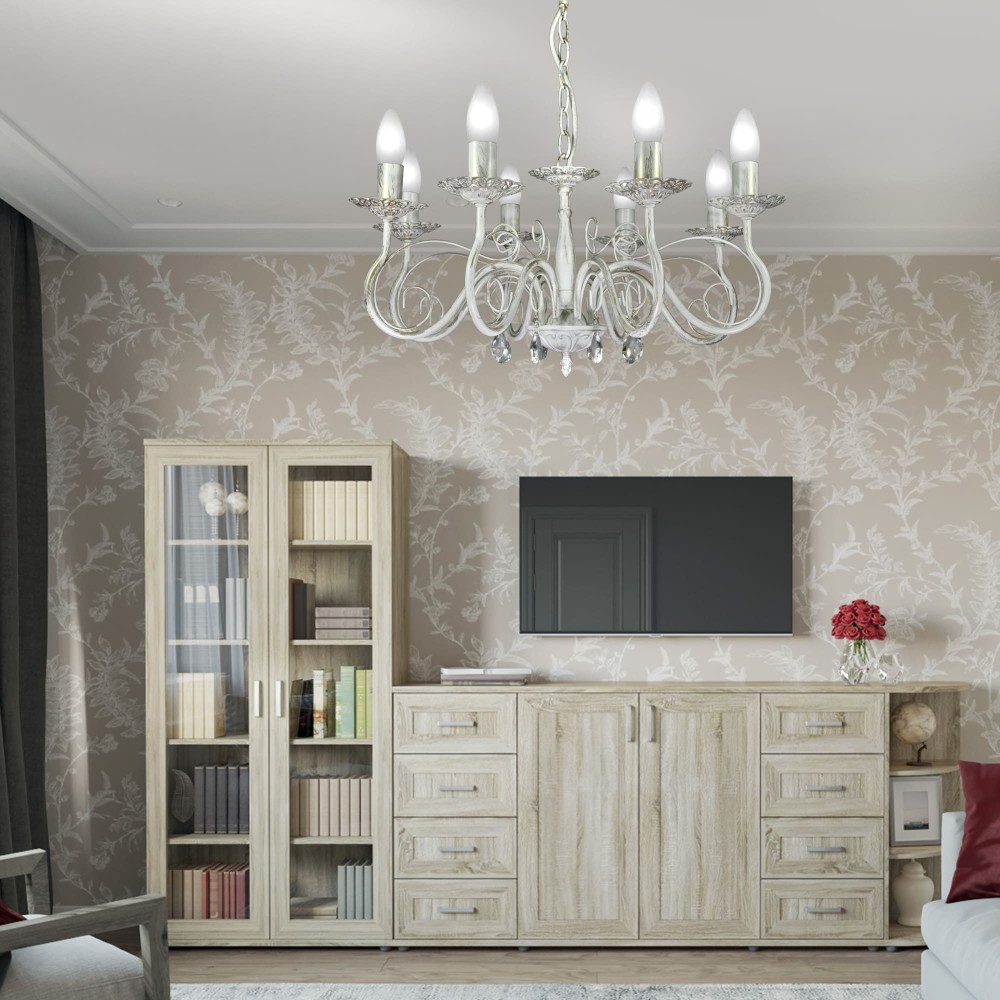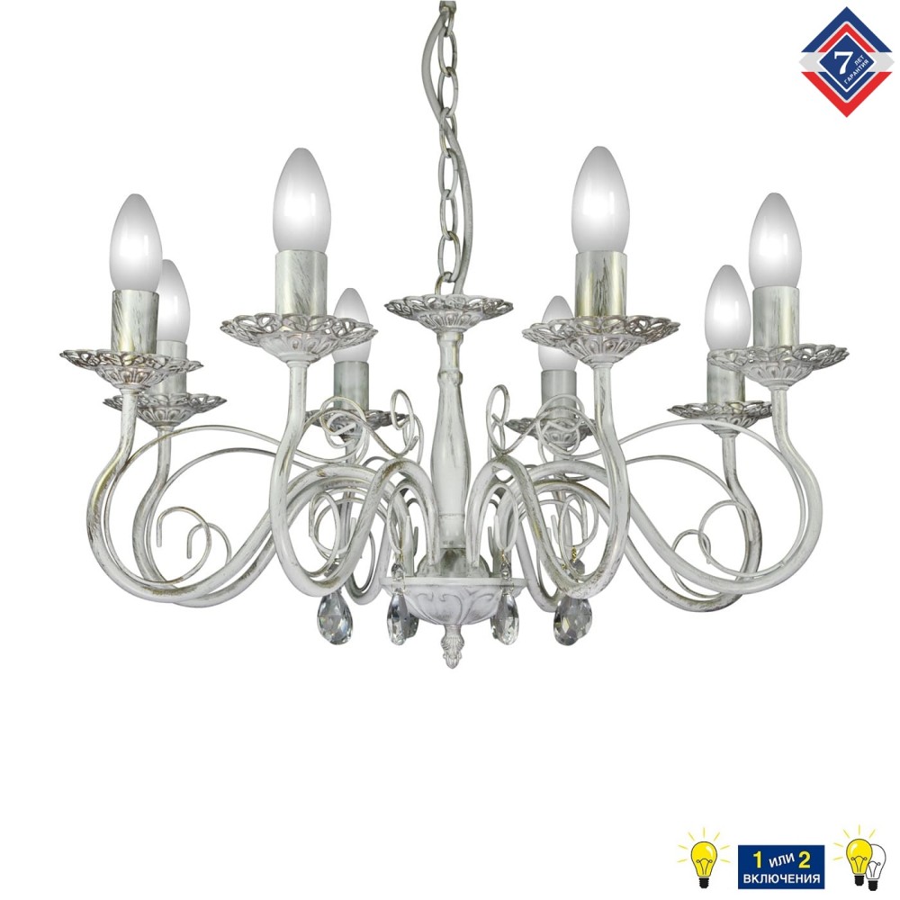 Ослепительная классика для вашего дома: Люстра с хрусталем 8 ламп S1164-8 от Петрасвет Эта роскошная люстра – воплощение элегантности и изысканности, идеально подходящая для создания атмосферы уюта и великолепия в любом интерьере. Люстра S1164-8 от бренда Петрасвет, произведенная в России, станет настоящим украшением вашего дома, подчеркнув его статус и индивидуальность. Изысканный дизайн и премиальные материалы Люстра S1164-8 сочетает в себе лучшие черты классического стиля, неоклассики и прованса, создавая неповторимый визуальный эффект. Использование высококачественного металла, покрытого патиной золота, придает светильнику благородный и теплый оттенок. Белый цвет основания гармонично дополняет золотистые акценты, создавая ощущение воздушности и легкости. Роскошные хрустальные подвески – сердце люстры Главной особенностью этой люстры являются восемь великолепных хрустальных подвесок, которые не просто украшают светильник, но и являются его ключевым элементом. Каждый хрустальный элемент, словно капля росы, переливается и играет светом, создавая завораживающий эффект. Эти подвески не только добавляют красоту, но и обеспечивают равномерное распределение света по помещению. Технические характеристики и функциональность Производитель: Петрасвет – российский производитель, зарекомендовавший себя как поставщик качественной и надежной продукции. Страна производства: Россия – гарантирует высокое качество материалов и сборки. Тип светильника: Подвесная люстра – обеспечивает гибкость в монтаже и возможность размещения над обеденным столом, в гостиной или спальне. Цоколь: Е14 – стандартный цоколь, обеспечивающий совместимость с большинством ламп. Количество ламп: 8 – обеспечивает достаточное освещение для помещения площадью 24-35 квадратных метров. Тип ламп: Накаливания, светодиодная, люминисцентная – позволяет выбрать оптимальный вариант освещения в зависимости от ваших предпочтений и бюджета. Использование светодиодных ламп – это энергоэффективное и долговечное решение. Световой поток: 6000 лм – обеспечивает яркое и равномерное освещение, достаточное для комфортного использования помещения. Напряжение: 220 В – стандартное напряжение, которое используется в большинстве домов. Размеры: Ширина основания: 12 см, Высота: 54-71 см, Ширина: 73 см, Размеры коробки: 30 x 32 x 31 см. Удобные размеры позволяют установить люстру практически в любом интерьере. Направление рассеивателя: Вверх – обеспечивает направленное освещение, создавая акцент на определенной зоне. Срок гарантии: 7 лет – подтверждает надежность и качество продукции Петрасвет. Тип крепления: Крюк – обеспечивает надежное и безопасное крепление люстры к потолку. Преимущества люстры S1164-8 от Петрасвет: Роскошный дизайн: Изысканный внешний вид, сочетающий в себе элементы классики, неоклассики и прованса. Высокое качество материалов: Использование металла с патиной золота и хрустальных подвесок гарантирует долговечность и эстетическую привлекательность. Яркое и равномерное освещение: Световой поток 6000 лм обеспечивает комфортное освещение для помещения площадью 24-35 квадратных метров. Универсальность: Подходит для различных интерьеров, от классических до современных. Надежность: Гарантия 7 лет подтверждает качество и долговечность продукции Петрасвет. Энергоэффект