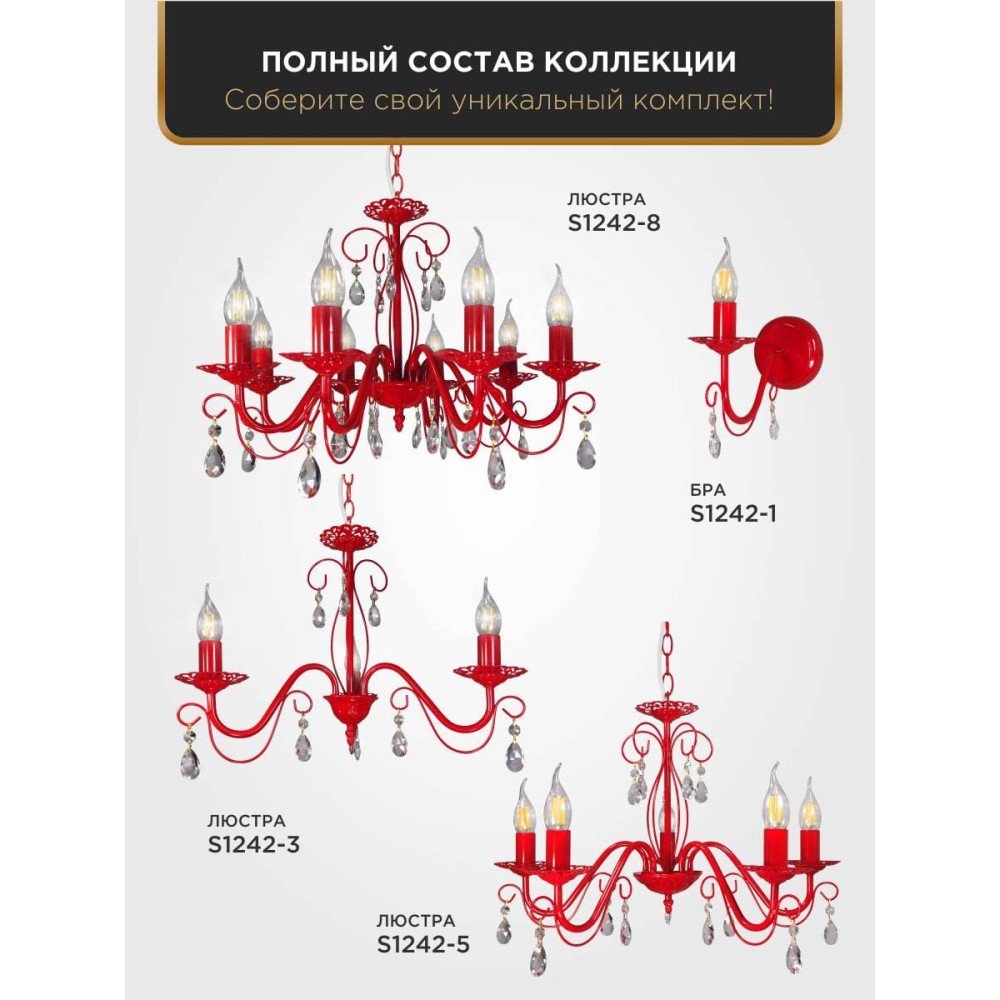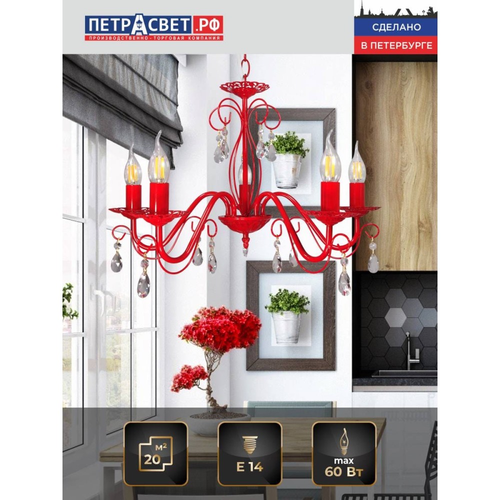 Ошеломительная люстра Аврора от Петрасвет – воплощение роскоши и элегантности для вашего дома Погрузитесь в мир изысканной красоты с подвесной люстрой Аврора от известного российского производителя Петрасвет. Эта великолепная люстра станет настоящим украшением любого интерьера, добавив ему атмосферу роскоши, уюта и неповторимого стиля. Аврора – это не просто источник света, это произведение искусства, созданное для тех, кто ценит качество, внимание к деталям и безупречный дизайн. Роскошный дизайн и премиальные материалы Люстра Аврора выполнена в стилях классики, неоклассики и прованса, что делает ее универсальной и подходящей для различных типов интерьеров. Ее изящный металлический каркас, окрашенный в насыщенный красный цвет, придает ей неповторимый шарм и глубину. Центральный элемент – впечатляющая композиция из пяти хрустальных подвесок, создающих игру света и тени, завораживая своей красотой и создавая атмосферу праздника и торжества. Технические характеристики и преимущества Производитель: Петрасвет – российский бренд, известный своим качеством и надежностью. Модель: S1153 – это уникальная модель, разработанная с учетом последних тенденций в дизайне освещения. Количество ламп: 5 – обеспечивает равномерное и достаточно яркое освещение. Тип цоколя: Е14 – стандартный и удобный тип цоколя, обеспечивающий простоту установки и замены ламп. Тип ламп: Накаливания, светодиодная, люминисцентная – Аврора совместима с различными типами ламп, что позволяет выбрать оптимальный вариант освещения по вашему вкусу и бюджету. Использование светодиодных ламп позволит существенно снизить энергопотребление и увеличить срок службы светильника. Цвет светильника: Красный – яркий и насыщенный цвет, который станет акцентом в интерьере. Тип монтажа: Подвесной – удобная и простая установка. Направление рассеивателя: Вверх – обеспечивает направленное освещение, идеально подходящее для зон отдыха, столовых и гостиных. Стиль: Классический, неоклассика, прованс – универсальный дизайн, который подойдет для различных интерьеров. Габариты: Ширина: 52 см – обеспечивает достаточное пространство для размещения ламп и хрустальных подвесок. Высота: 51-68 см – регулируемая высота позволяет адаптировать люстру под высоту потолка и ваши личные предпочтения. Размер коробки: H 20 см, L 30 см, W 25 см – удобна для транспортировки и хранения. Напряжение: 220 В – стандартное напряжение, обеспечивающее стабильную работу светильника. Площадь освещения: 15-20 м? – обеспечивает достаточное освещение для зон отдыха, столовых и гостиных. Световой поток: 3750 лм – достаточная яркость для комфортного освещения. Тип крепления: Крюк – обеспечивает надежную и безопасную установку. Срок гарантии: 7 лет – гарантия качества и надежности от производителя. Хрустальные подвески – сердце люстры Аврора Хрустальные подвески – это не просто декоративный элемент, это душа люстры Аврора. Они создают потрясающую игру света и тени, преломляя его и рассыпая по всему помещению. Каждый хрустальный элемент выполнен из высококачественного стекла, что гарантирует его прочность и долговечность. Хрустальные подвески добавляют люстре неповторимый шарм и элегантность, делая ее настоящим украшением интерьера. Преимущества покупки люстры Аврора от Петрасвет: Высокое качество: Люстра 