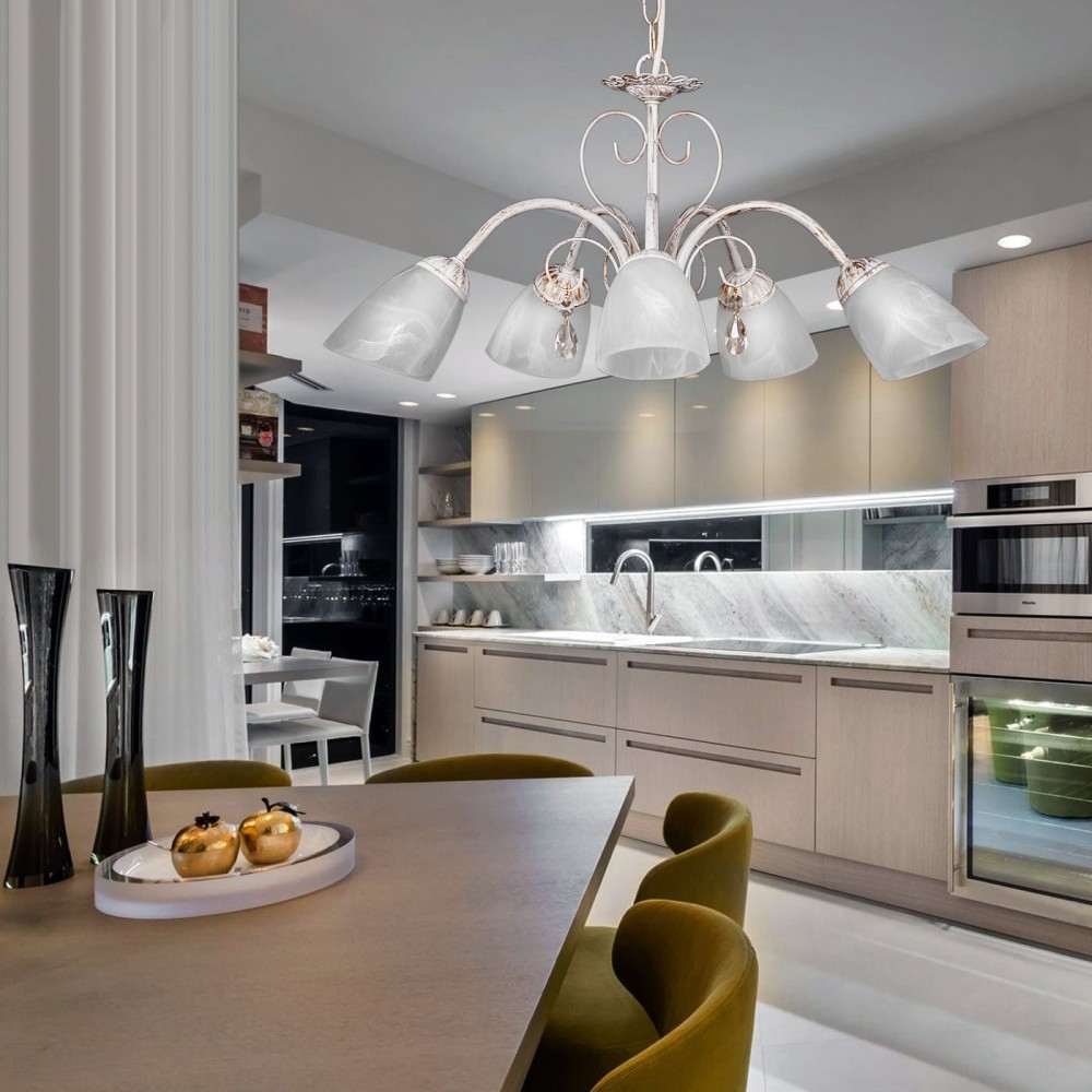 Люстра подвесная 5 плафонов S2005-5 – Изысканный Класс для Вашего Дома Эта роскошная люстра – идеальное решение для тех, кто ценит элегантность, стиль и безупречное качество. Модель S2005-5 от бренда Петрасвет, произведенная в России, станет настоящим украшением любого интерьера, добавив ему атмосферу уюта, тепла и благородства. Эта люстра сочетает в себе классическую эстетику, элементы неоклассики и акценты прованса, создавая неповторимый и гармоничный образ. Основные характеристики и преимущества: Дизайн: Люстра S2005-5 воплощает в себе идеальное сочетание традиций и современных тенденций. Ее белоснежный цвет с патиной золота придает светильнику элегантный и благородный вид. Акцент на деталях – изящные хрустальные подвески, которые не только добавляют красоты, но и рассеивают свет, создавая мягкое и уютное освещение. Широкое основание (12 см) и лаконичная форма делают эту люстру универсальной и подходящей для различных стилей интерьера. Материалы: Люстра изготовлена из высококачественных материалов, что гарантирует ее долговечность и надежность. Металлический каркас обеспечивает прочность и устойчивость конструкции. Стеклянные плафоны, выполненные с применением передовых технологий, обеспечивают отличную светоотдачу и равномерное распределение света. Хрустальные подвески, изготовленные из прочного стекла, придают светильнику изысканность и блеск. Размеры: Размеры люстры S2005-5: ширина – 60 см, высота – 54-71 см. Размер коробки: H 30 см, L 32 см, W 31 см. Такие габариты позволяют использовать эту люстру в больших помещениях, не создавая ощущения перегруженности. Световой поток и мощность: Люстра обеспечивает световой поток 3750 люмен, что достаточно для освещения помещений площадью 15-20 квадратных метров. Мощность светильника – 3750 лм. Она рассчитана на использование ламп накаливания, светодиодных или люминисцентных. Тип монтажа и крепление: Люстра представляет собой подвесную модель, которая устанавливается на потолок с помощью крюка. Установка не требует специальных навыков, и люстру можно самостоятельно установить, следуя инструкции. Напряжение: Напряжение светильника – 220 В. Гарантия: Производитель предоставляет гарантию на люстру сроком 7 лет. Это подтверждает высокое качество продукции и уверенность производителя в ее надежности. Совместимость ламп: Люстра совместима с различными типами ламп: Накаливания: Позволяет создать теплую и уютную атмосферу. Однако, следует учитывать высокий расход электроэнергии. Светодиодные лампы: Отличаются высокой энергоэффективностью, долгим сроком службы и широким спектром цветов. Люминисцентные лампы: Представляют собой компромисс между энергоэффективностью и цветопередачей. Универсальность стилей: Люстра S2005-5 идеально впишется в интерьеры в различных стилях: Классический: Благодаря элегантному дизайну и использованию благородных материалов, люстра станет центральным элементом классического интерьера. Неоклассика: Сочетание традиционных элементов с современными акцентами делает люстру отличным выбором для интерьеров в стиле неоклассика. Прованс: Использование патины золота и хрустальных подвесок придает светильнику атмосферу французского прованса. Дополнительная информация: В комплектацию люстры входят паспорт на изделие. Почему стоит выбрать люстру S2005-5 от Петрасвет? Выс