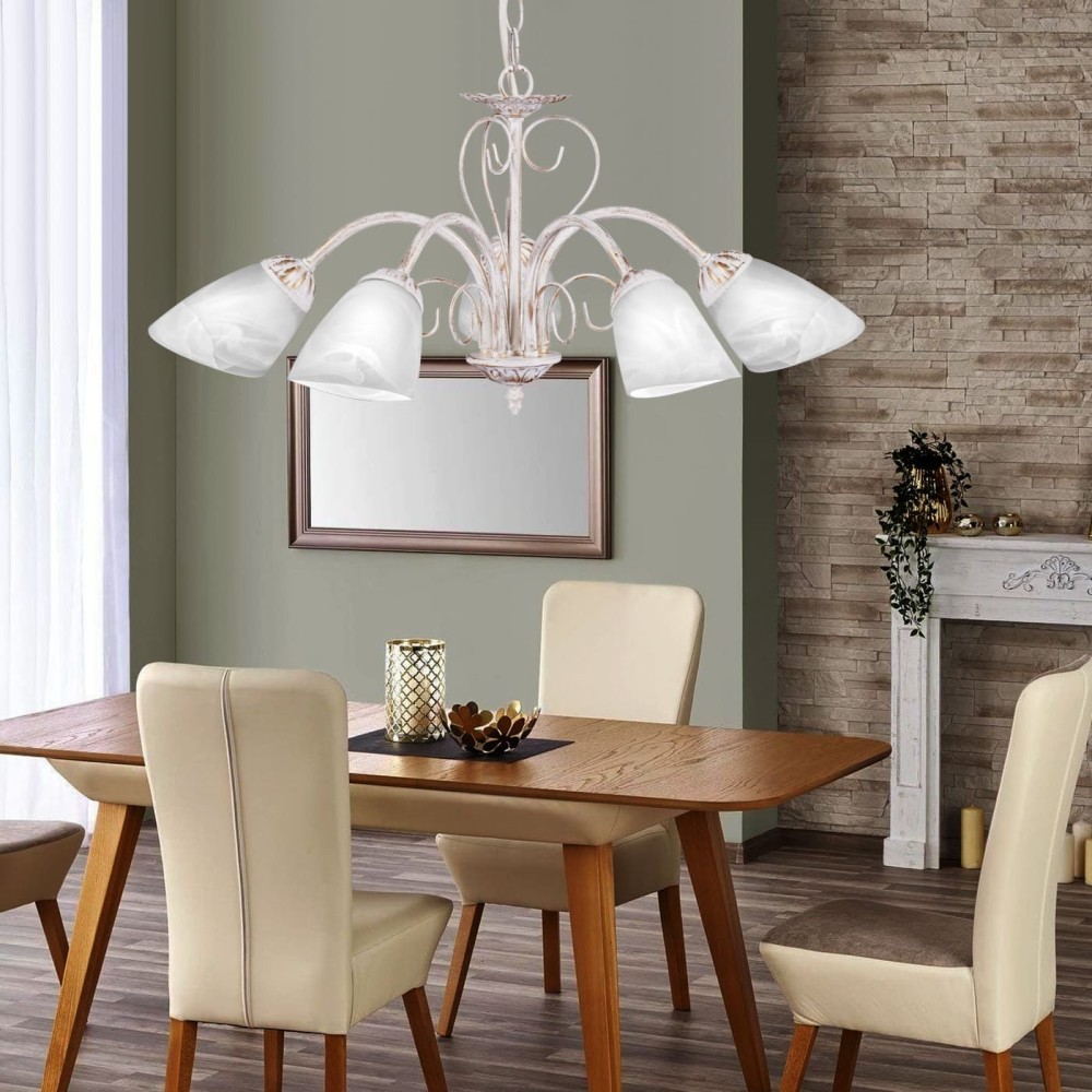 Люстра подвесная 5 плафонов S2199-5 – Изысканность и теплое сияние для вашего дома Эта роскошная подвесная люстра станет безусловной звездой вашего интерьера, привнося в него атмосферу уюта, элегантности и неповторимого стиля. Люстра S2199-5 от бренда ПЕТРАСВЕТ – это сочетание традиционных форм, современных технологий и безупречного качества, изготовленного в России. Идеально подойдет для гостиной, столовой, спальни или других помещений, где вы цените красоту и комфорт. Дизайн и стиль: Люстра S2199-5 воплощает в себе идеальное сочетание стилей – классики, неоклассики и прованса. Ее изящная конструкция, выполненная из металла с патиной золота, придает ей благородный и утонченный вид. Оттенки золота и металла гармонично сочетаются с прозрачными стеклянными плафонами, создавая мягкое и рассеянное освещение. Стиль неоклассики добавляет люстре шарма и изысканности, а элементы прованса – тепла и уюта. Люстра прекрасно дополнит интерьер в стиле ретро, кантри, барокко или просто подчеркнет вашу любовь к элегантности и красоте. Технические характеристики и преимущества: Бренд: ПЕТРАСВЕТ – известный российский производитель светотехнических приборов, зарекомендовавший себя как надежный поставщик качественной продукции. Страна производства: Россия – гарантия высокого качества и соответствия европейским стандартам. Тип светильника: Подвесная люстра – оптимальное решение для создания многоуровневого освещения. Материал светильника: Металл – обеспечивает прочность, долговечность и эстетичный внешний вид. Цвет светильника: Белый с патиной золота – создает мягкое и теплое освещение, идеально подходящее для различных интерьеров. Количество плафонов: 5 – обеспечивает равномерное освещение помещения, создавая уютную атмосферу. Тип цоколя: Е14 – стандартный и удобный тип цоколя для подключения ламп. Модель: S2200 – современная и стильная модель, разработанная с учетом последних тенденций в дизайне. Материал плафона: Стекло – обеспечивает прозрачность и позволяет лампам свободно излучать свет. Ширина основания: 12 см – оптимальный размер для устойчивости и эстетичного внешнего вида. Ширина светильника: 60 см – обеспечивает достаточное освещение площади до 15-20 квадратных метров. Высота светильника: 54-71 см – позволяет регулировать высоту светильника в соответствии с вашими предпочтениями и высотой потолка. Напряжение: 220 В – стандартное напряжение, используемое в большинстве бытовых электросетей. Световой поток: 3750 лм – достаточный уровень освещенности для комфортного использования помещения. Тип крепления: Крюк – обеспечивает надежное крепление светильника к потолку. Площадь освещения: 15-20 м? – оптимальный размер для использования в гостиной, столовой, спальне или других помещениях. Гарантия: 7 лет – подтверждение высокого качества продукции и уверенности производителя в своей продукции. Размер коробки (H x L x W): 30 x 32 x 31 см – удобный размер для транспортировки и хранения. Тип ламп: Люстра S2199-5 совместима с различными типами ламп, что позволяет вам выбрать оптимальный вариант для ваших потребностей: Накаливания: Обеспечивают теплый и уютный свет, но потребляют много энергии. Светодиодные (LED): Энергоэффективные, долговечные и яркие лампы, которые потребляют значительно меньше энергии, чем лампы накаливания. Люминисцентные: Эконом